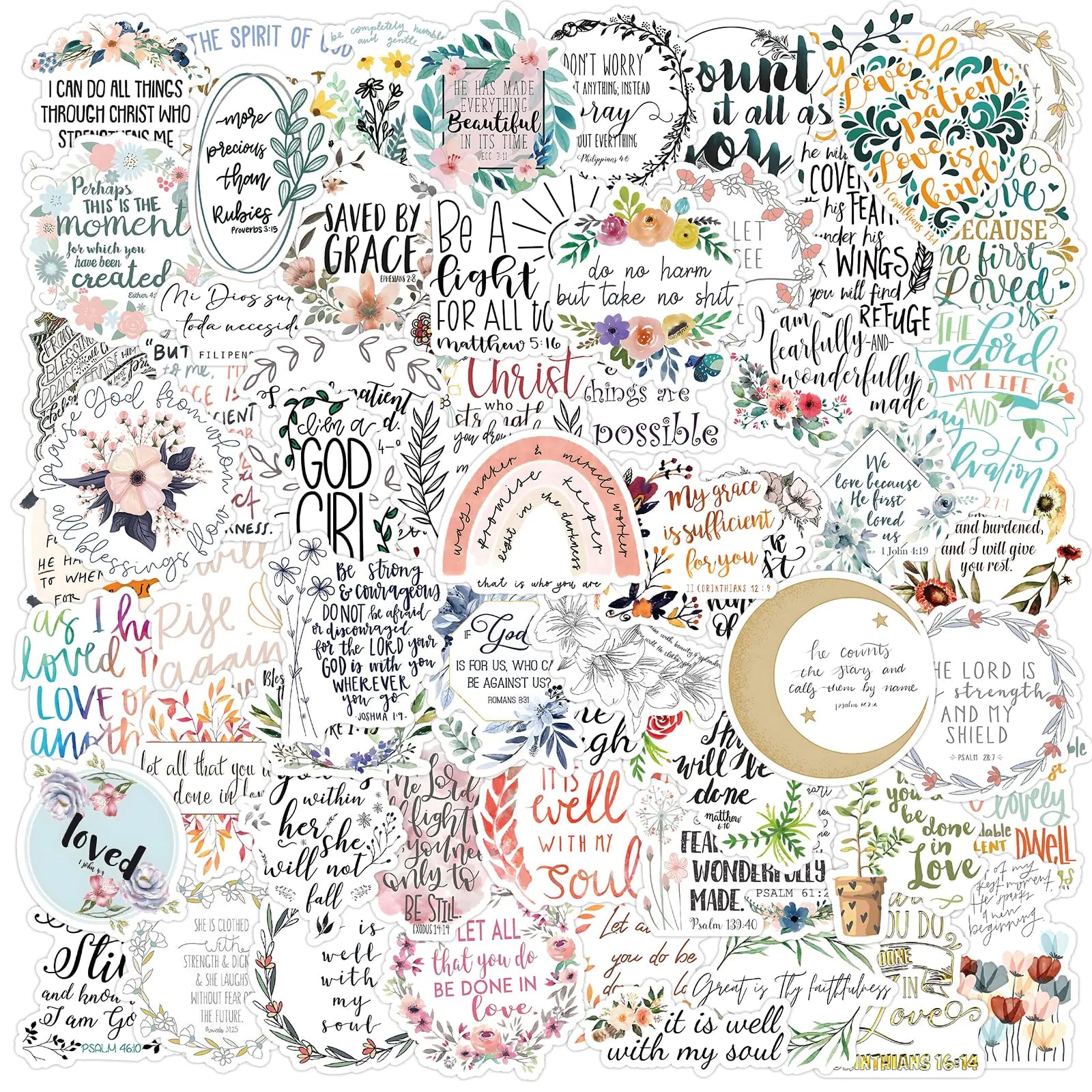 Packing List:100pcs * Bible inspirational personalized stickersSpecifications:Size: 5-8cm/1.96-3.15inColor: ColorMaterial: PVCFeatures:1. Get the sticker clean the surface of the object peel off the sticker backing paper and stick the sticker firmly on the surface of the object without leaving any gaps. Customize your items at will and let your personality shine2. Tips: These stickers are not suitable for rough and uneven surfaces.3. These versatile water bottle stickers make your items stylish and interesting. They are unique in style and are decorations that show personality and convey humor and happiness.4. Your satisfaction is our motivation to provide the best quality products. If you have any questions or problems during the purchase process or are not satisfied with the product please feel free to contact us we will try our best to provide you with a satisfactory solution.